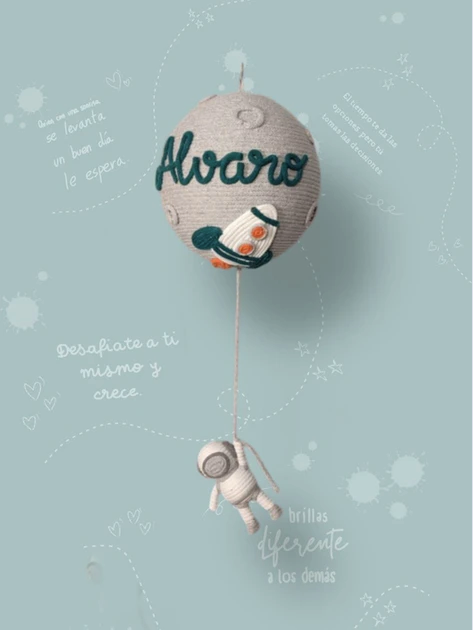 Cada globo es cuidadosamente confeccionado a mano, cubriendo esferas de poliespán con suaves cuerdas de algodón trenzado, aseguradas con precisión mediante silicona caliente. El resultado es una pieza única que combina textura, calidez y encanto artesanal.