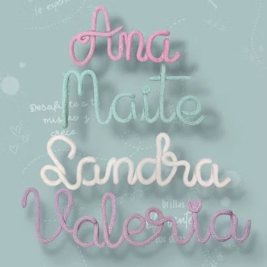 Los nombres personalizados con tricotín son una forma única y encantadora de decorar cualquier espacio. Hechos a mano con hilo de algodón trenzado y alambre maleable, cada nombre adquiere una forma delicada y armoniosa, ideal para habitaciones infantiles, regalos especiales o eventos. Con una combinación de colores suaves y diseños personalizados, estos nombres añaden un toque artesanal y cálido, convirtiéndose en un detalle inolvidable cargado de creatividad y amor